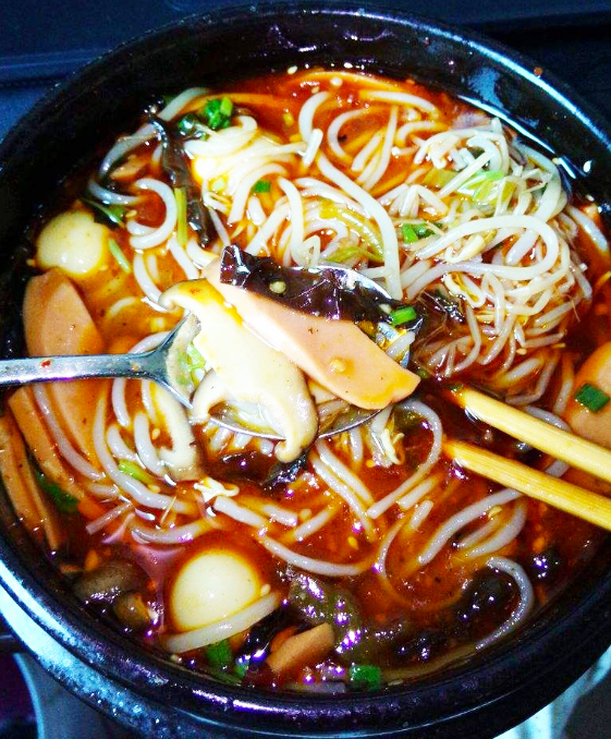 6、海帶和香菇煮熟以后把泡好的米線也放進鍋中煮,1-2分鐘即可。