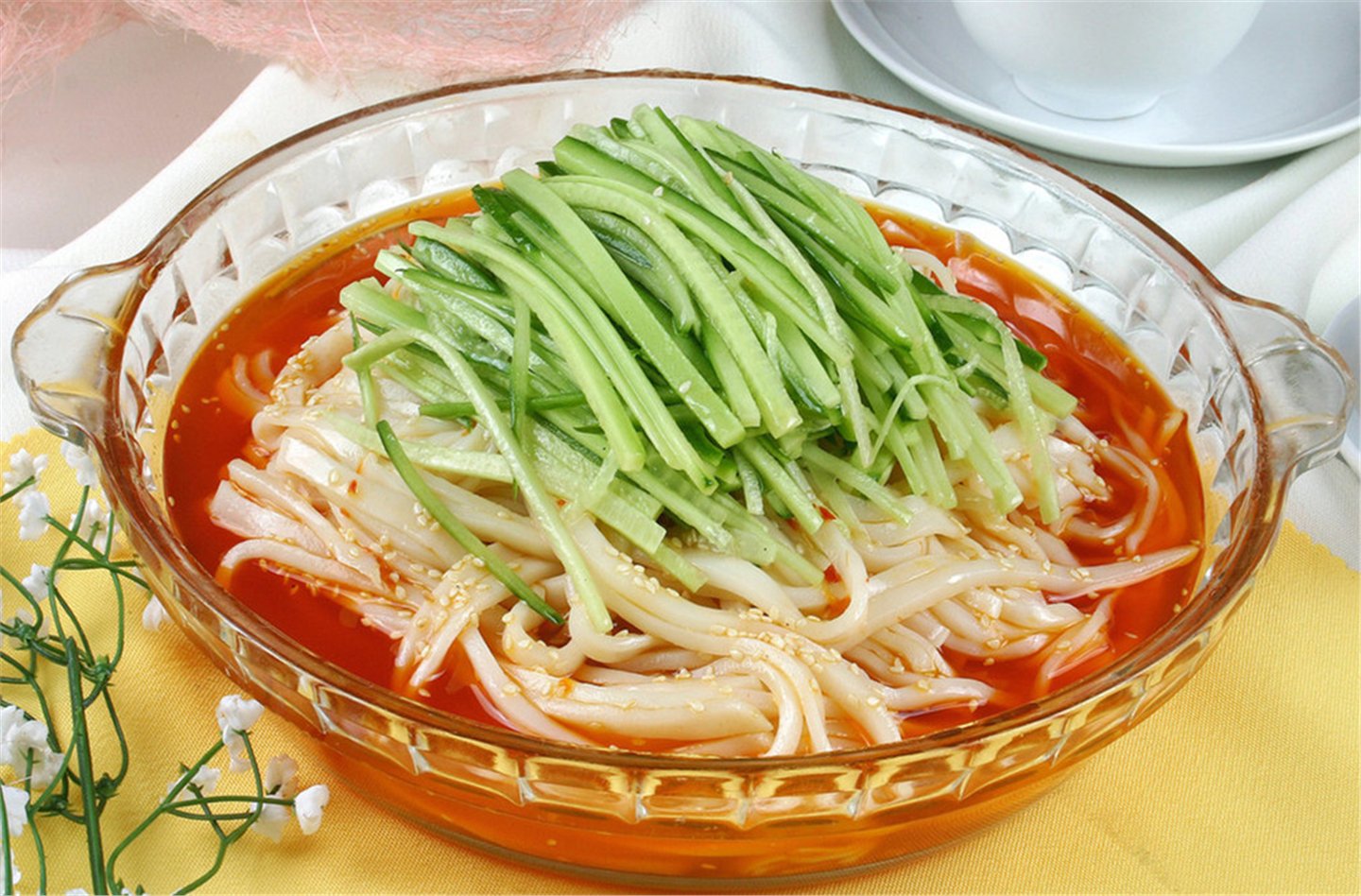 漢中米皮不想秦鎮米皮那樣歷史悠久,主要是在西安一代比較流行。其名漢中也是因為主要產于古代漢中一代,漢中米皮加工時是用小石磨加水并將米磨制成漿。這種水磨米皮在制作的時候,要先將米漿平鋪于竹蒸籠上蒸制。然后加入調料,主要用到的調料有蒜汁、辣椒油、再一個比較重要的就是料水。