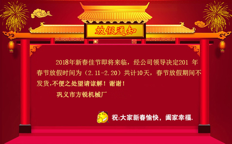 方銳機(jī)械米線機(jī)廠家全體職工給大家拜年啦!祝大家在2018年身體健康、闔家歡樂、財(cái)源廣進(jìn)、心想事成!